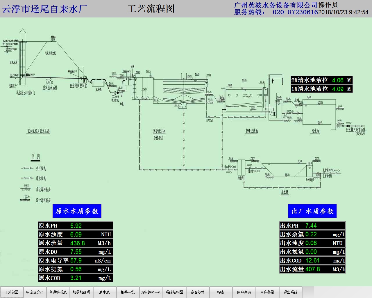 我司承包的云浮市迳尾水库应急水源引水工程设备采购与安装及服务工程,内容包括所有厂区设备(含水厂工艺设备、高低压电气、自控系统及仪表、安防监控系统设备等)的供货、安装及服务。经我司安装调试并试运行后,出厂水质达到自来水水质国家标准,于2018年10月23日顺利通过市水务局相关验收。